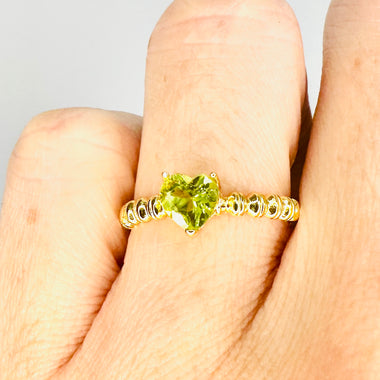 925 Sterling Silver Gold Plated Peridot Ring Crystal Gemstone
