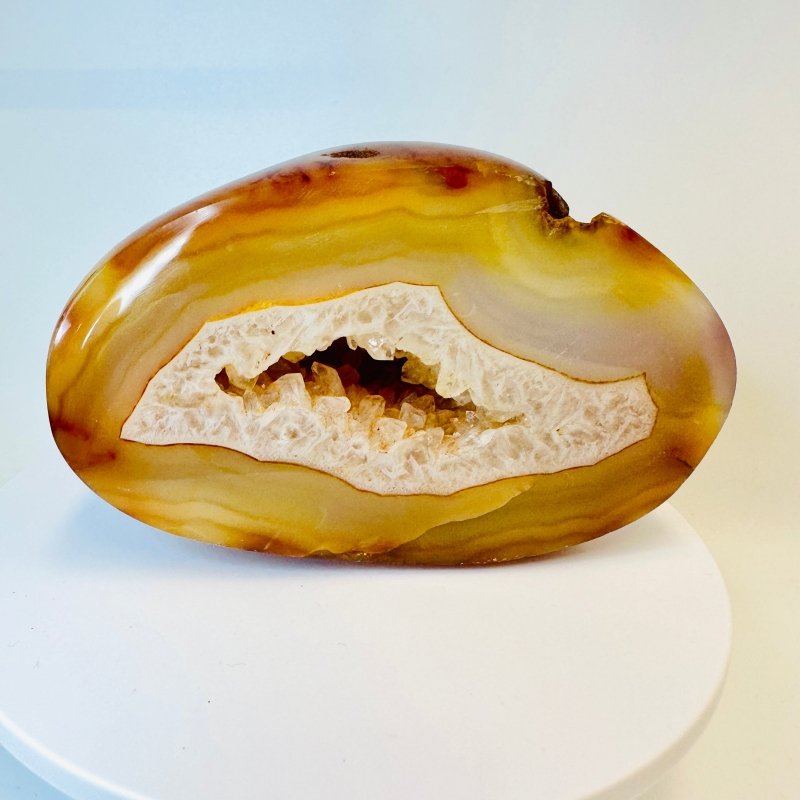 Experience the healing benefits of Carnelian Crystal Spheres with this one-of-a-kind carnelian. Stimulate positive energy and cultivate a feeling of well-being with this natural crystal.